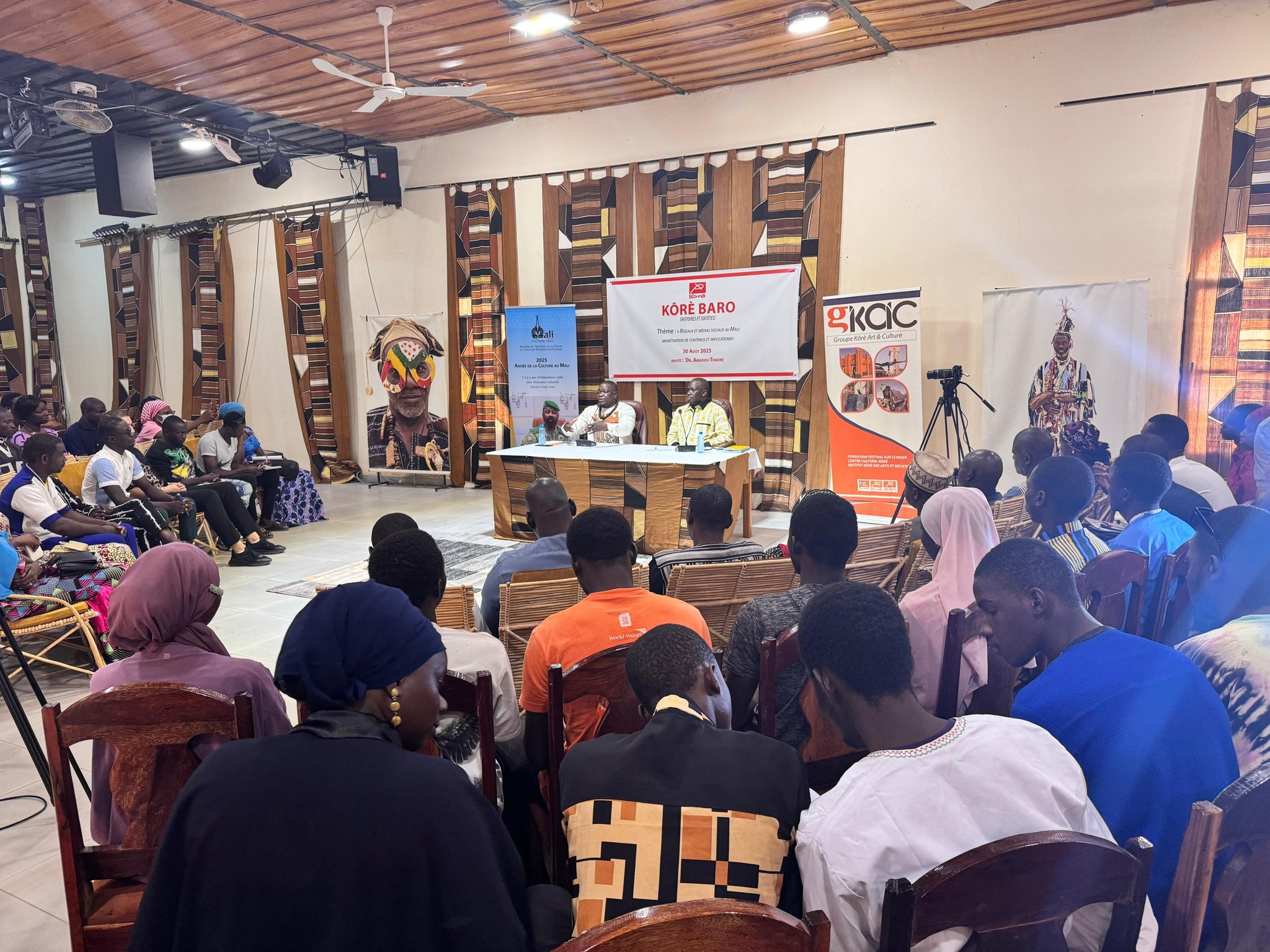 Main Album » Kôrè Baro (Histoires et sociétés) Thème : « Réseaux et médias sociaux au Mali : monétisation de contenu et implications », animé par Dr. Amadou Traoré, le samedi 30 août 2025 au Centre Culturel Kôrè.